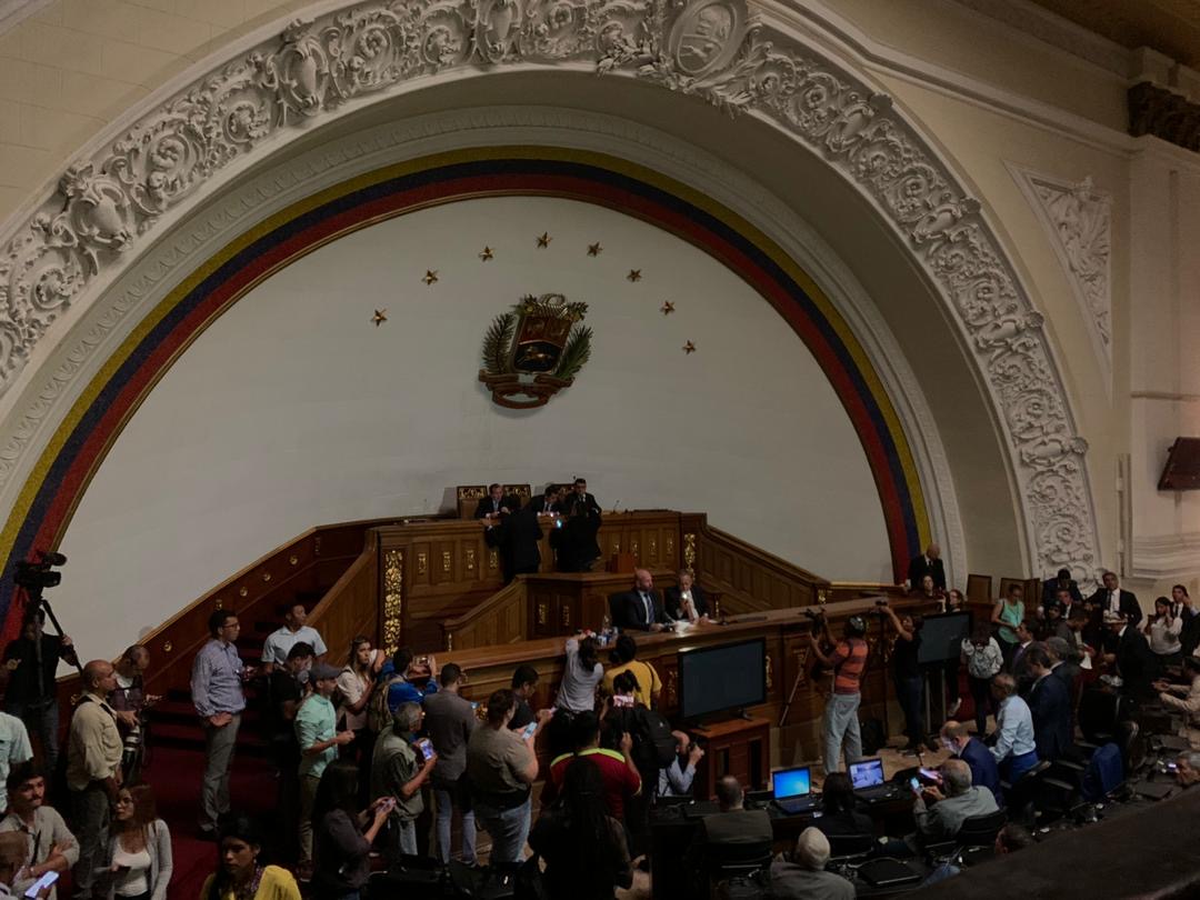 Guaidó entered the assembly's main hall, called the hemiciclo. Then, reports @AnaVHerrero, the lights went out.pic.twitter.com/FeBtSquuCN