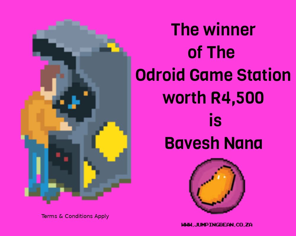 http://www.jumpingbean.co.za  Congratulations Bhavesh Nana! You are the winner of the Odroid Game Station! Contact Jumping Bean at support@jumpingbean.co.za to claim your prize. #Winner #JumpingBean #Odroid #ComicCon #SouthAfrica #Johannesburg #LinuxFoundation #Winners #Prizepic.twitter.com/R7nAXQ93HC