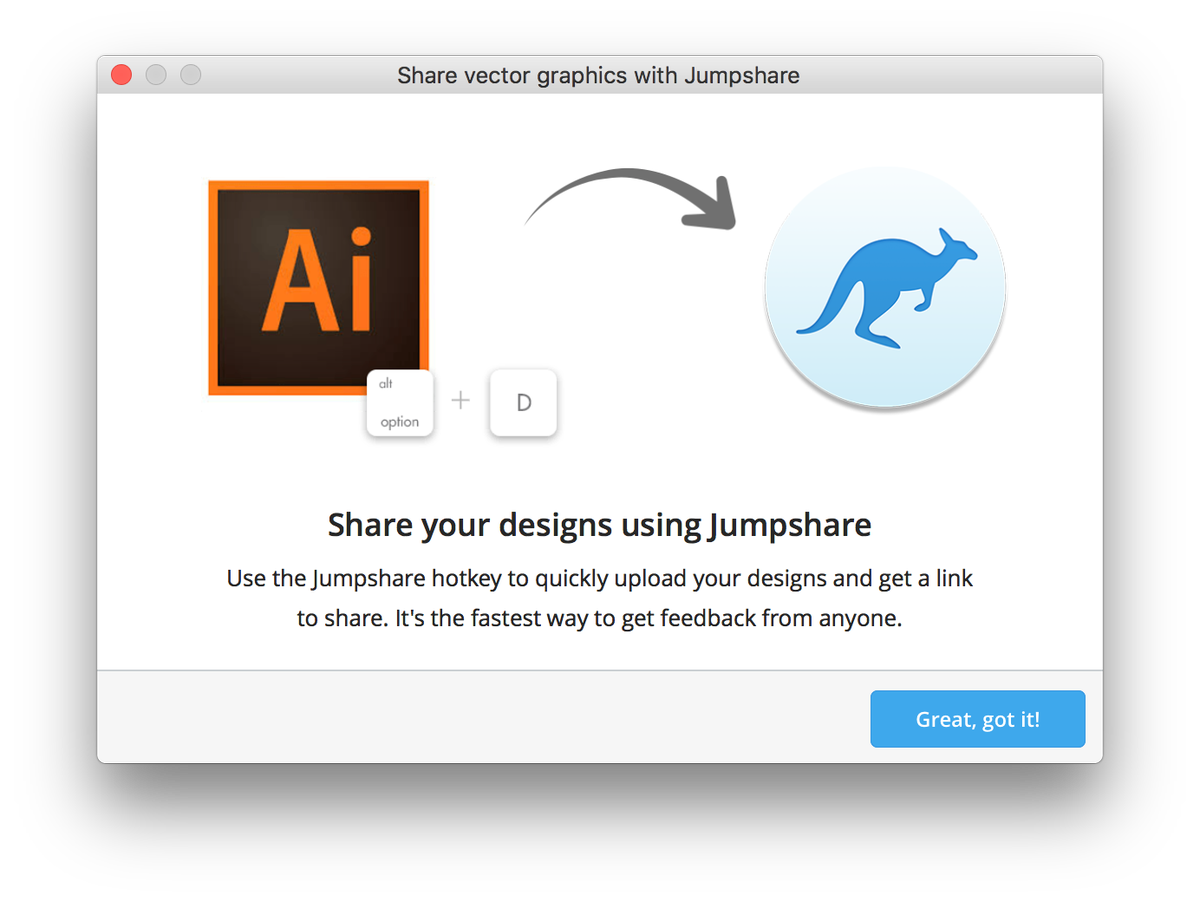 Use Option+D to quickly share your vector graphics from Adobe Illustrator and take feedback from team and clients.