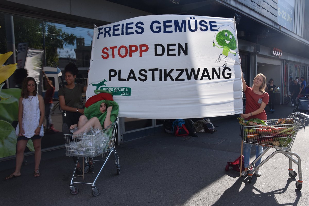 #PlasticAttack in#Zürich hatten wir heute viele neue Mitstreiter*innen. Wir alle wollen uns beim Einkauf nicht mehr länger unnötigen#Plastikabfall aufzwingen lassen.#FreiesGemüse https://www.jungegruene.ch/medienmitteilung/1174 …pic.twitter.com/Hb1nKttDzJ