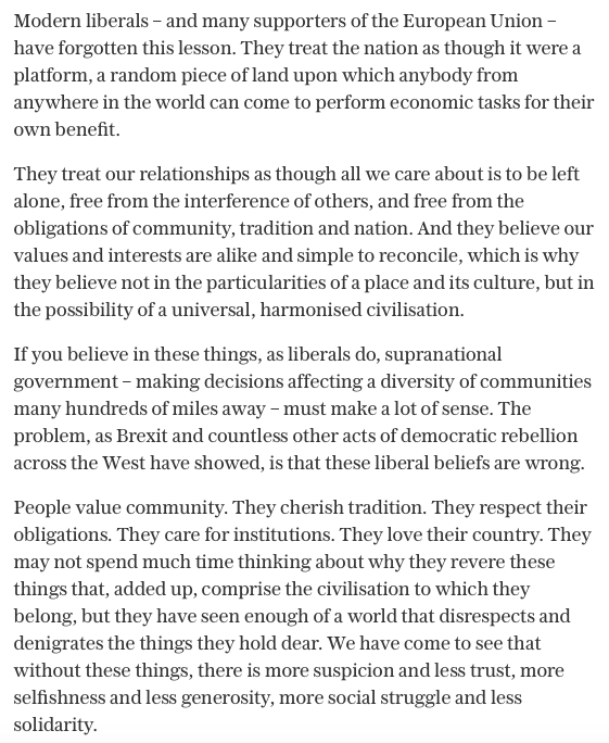 Oh. Well this is total bullshit. It’s some prose wrapped around the argument “liberals aren’t patriots and don’t like Britain”. I actually care about my country, actually care it’s people aren’t thrown into a blender for some petty reason no one cared about 4 years ago. /threadhttps://twitter.com/NJ_Timothy/status/1224235673265278983 …