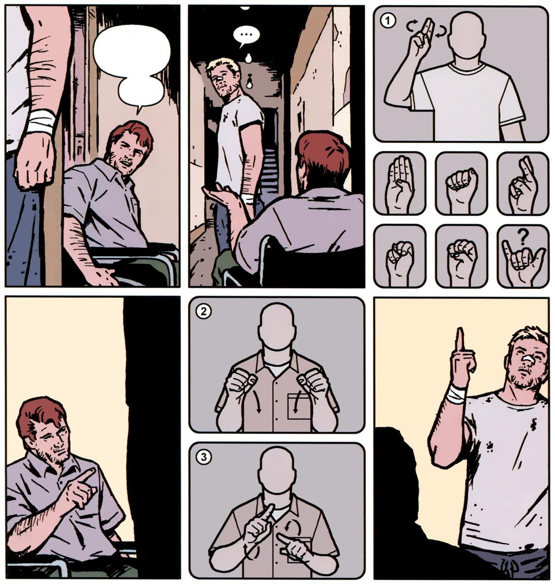 Example from the Hawkeye comic. It gives a more "How To" guide feel but it works with the rest of the series' tonepic.twitter.com/cseFCPgBmZ