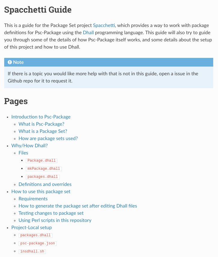 wrote some docs for Spacchetti. even if you don't plan to use my package set, this should tell you what you need to know about using psc-package https://spacchetti.readthedocs.io/en/latest/index.html …pic.twitter.com/pJHSrGYA9e