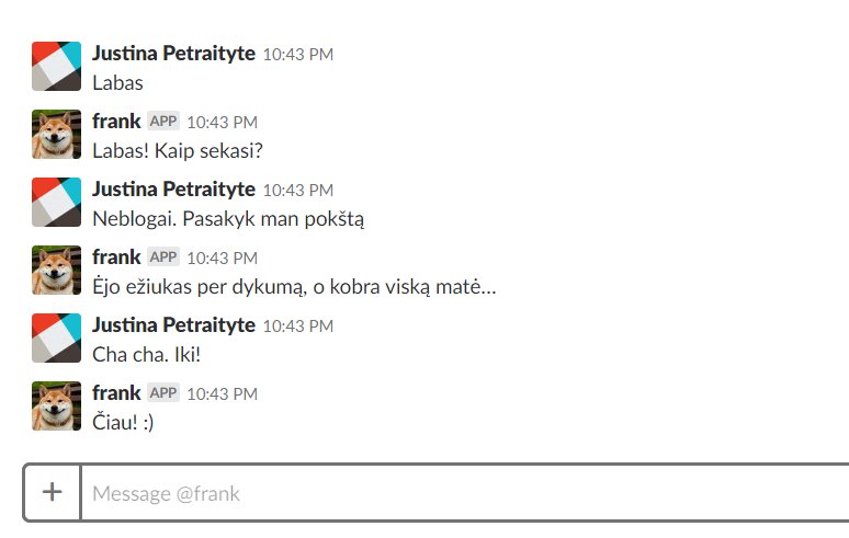 Just trained Frank, my little weather bot, to tell the hedgehog jokes in Lithuanian!