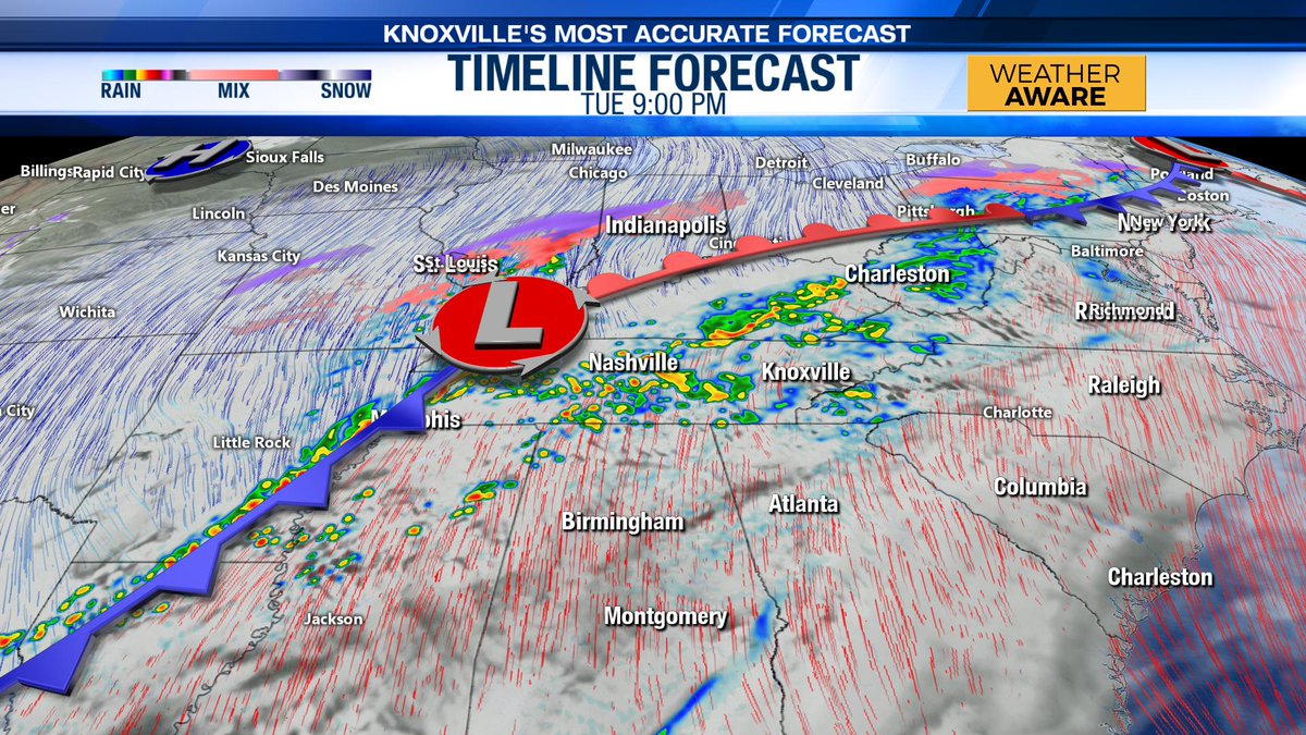Starting Tuesday, and lasting through the rest of the week, weather conditions will be unsettled across East Tennessee. Keep the rain gear close. By the end of the week, we will need to bring the coats back out.pic.twitter.com/xY41baR5gA
