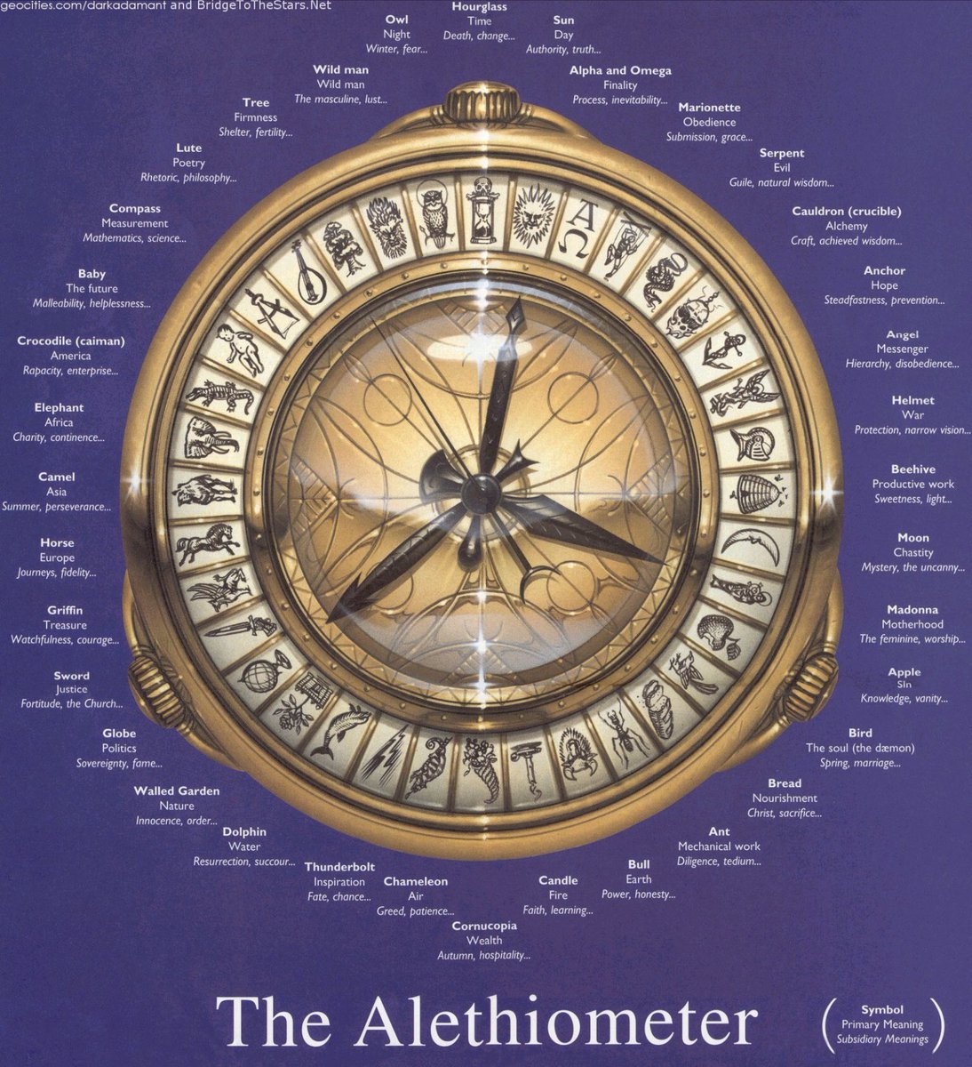 ‘Each symbol has one primary meaning and a range of subsidiary meanings.’ Not sure who did the original work on this - I’ve seen the text on a few sites - but this version is from here: https://bridgetothestars.net/images/alethiometer.jpg … Look at those variations on the Sun! .pic.twitter.com/BHS244mlHV