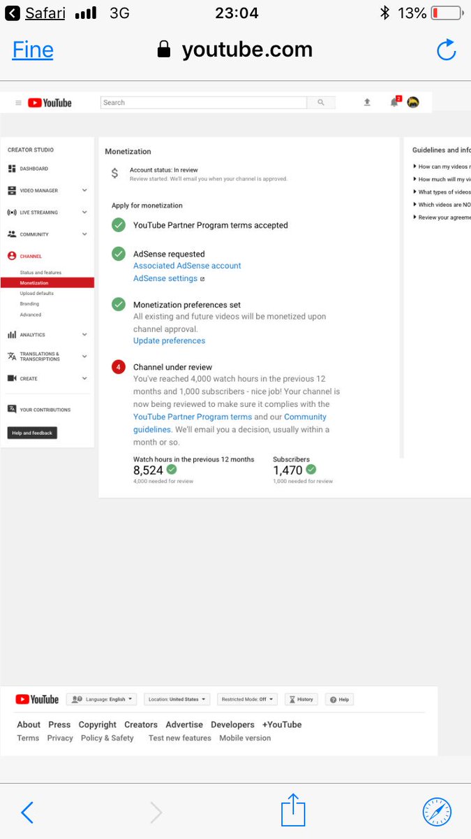 @TeamYouTube Hello i completed the 1000 subscribers and 4000 hours almost a month ago can you check out when will i get monetisation activated my youtube channel is https://www.youtube.com/channel/UCuXGboO2IDLARIuBx_KCcYQ …