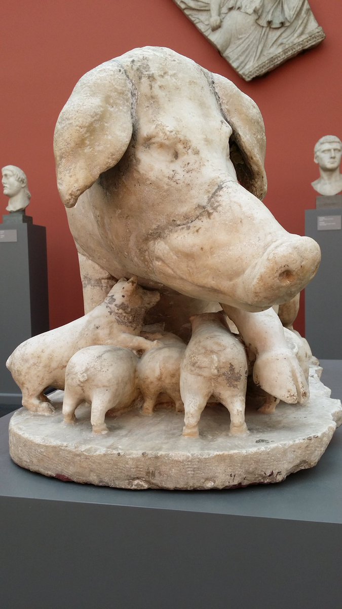 The lovely marble statue of the "Laurentian Sow" with her piglets; 1st/2nd century AD. Ny Carlsberg Glyptotek, Copenhagenpic.twitter.com/A6z1xj07oS
