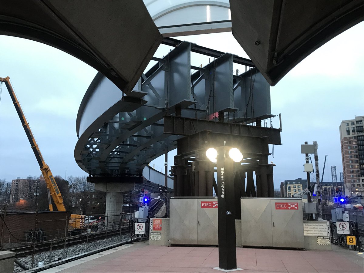 Google Earth just updated their aerials with photos taken April 30, and you can already see Purple Line construction underway in Bethesda, along the Georgetown Branch, and a tunnel being built in Long Branch.pic.twitter.com/wlU1cPbGFc