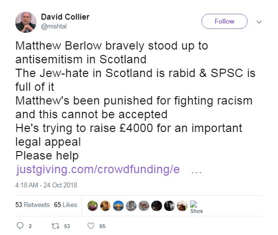 The full deleted tweet of David Collier appealing to people to contribute towards Matthew Berlow's legal costs.pic.twitter.com/sWFafVwrhN