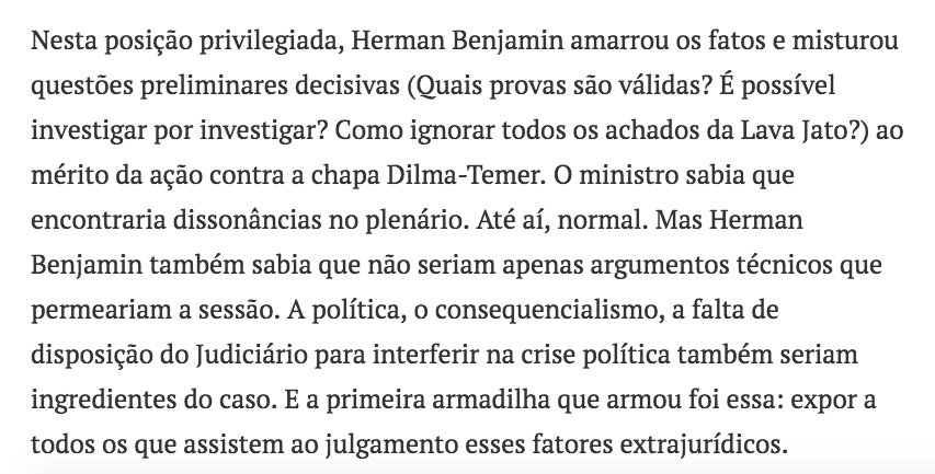 Após dias de protagonismo de Herman, hoje outros ministros votam. Mas relator soube prender os demais em seu roteiro https://goo.gl/0E2N2S pic.twitter.com/c1ltYOd6XQ