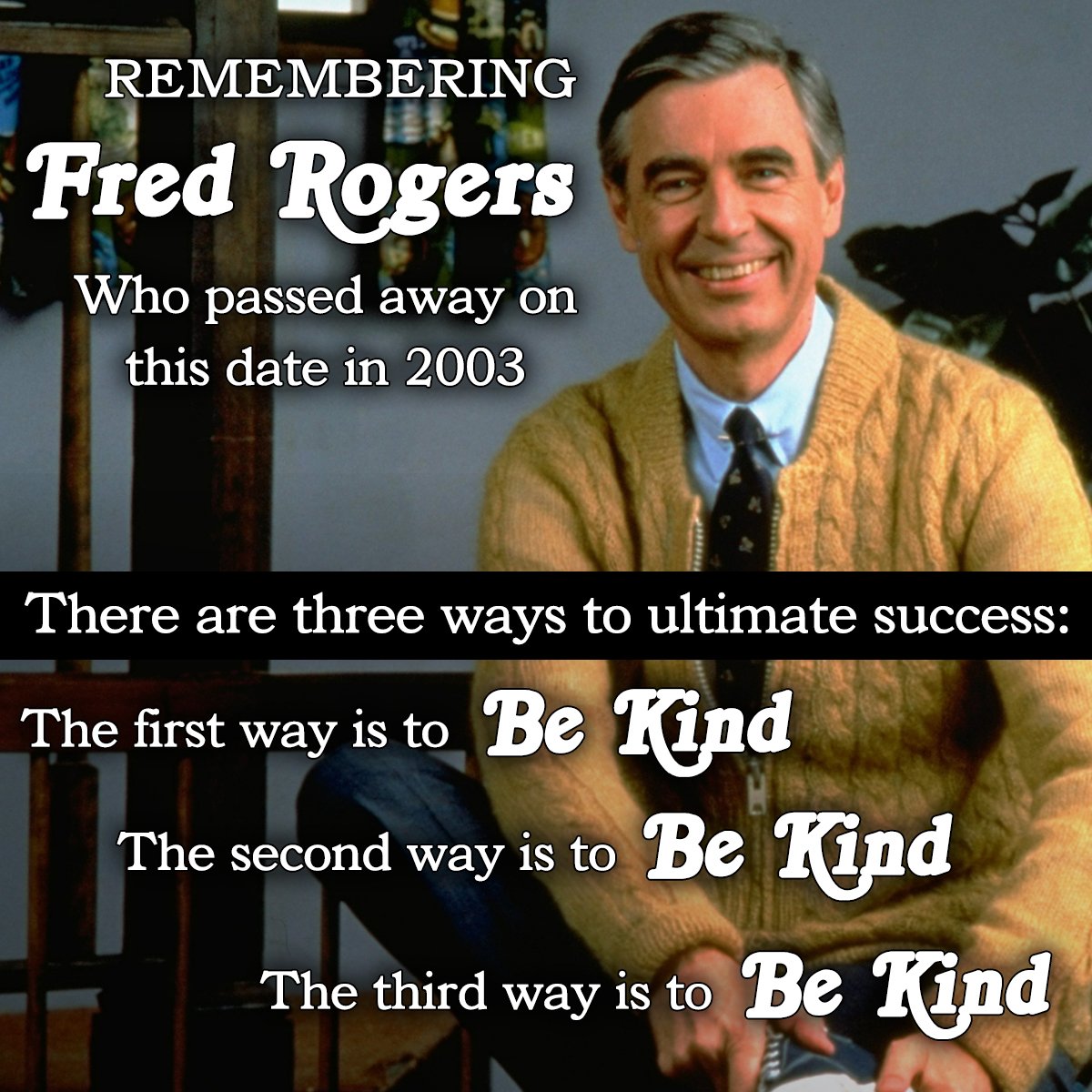 Let's all take a minute to remember the best neighbor we've ever had... Fred Rogers passed away on this date in 2003.