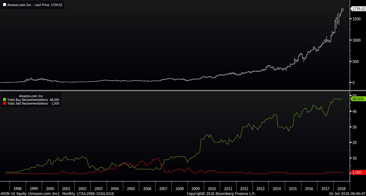 Pretty sure this would be the first "value stock" in history with a 48-to-1 buy-to-sell analyst rating. https://www.bloomberg.com/view/articles/2018-07-09/amazon-stock-is-actually-a-value-play …pic.twitter.com/YW9ukTq3WV