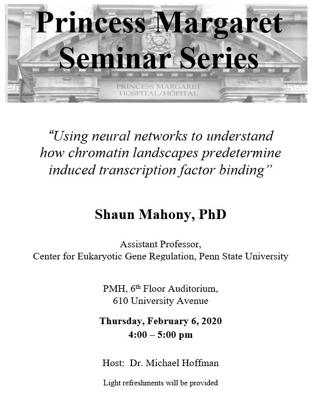 @mahonylab's seminar on "Using neural networks to understand how chromatin landscapes predetermine induced transcription factor binding". 4p@pmcancercentre auditorium!pic.twitter.com/JjnXf7RTd5