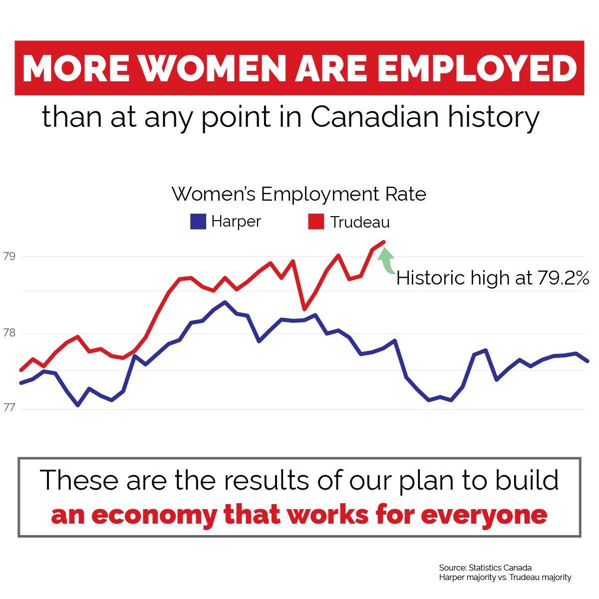 Did you know that more women are employed than at any point in Canadian history? #realchangeisworking @Bill_Morneaupic.twitter.com/Ra7yN57MXc