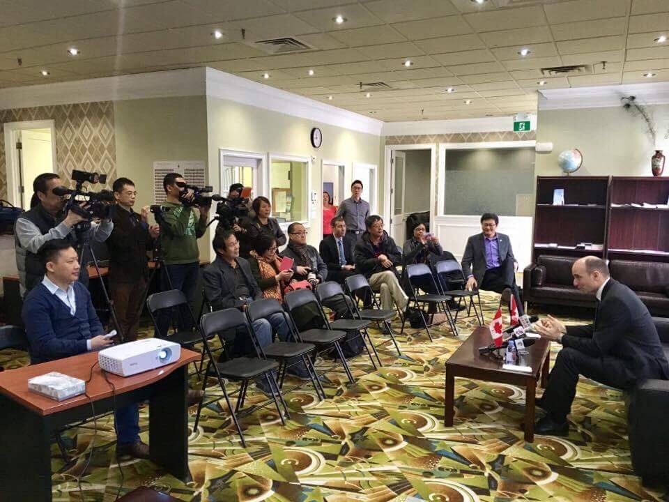 Je m’adresse aux médias de la communauté chinoise au sujet de la #classemoyenne. Heureux d’être en compagnie de @GengTanMP! #polcanpic.twitter.com/fUztFNQdrJ