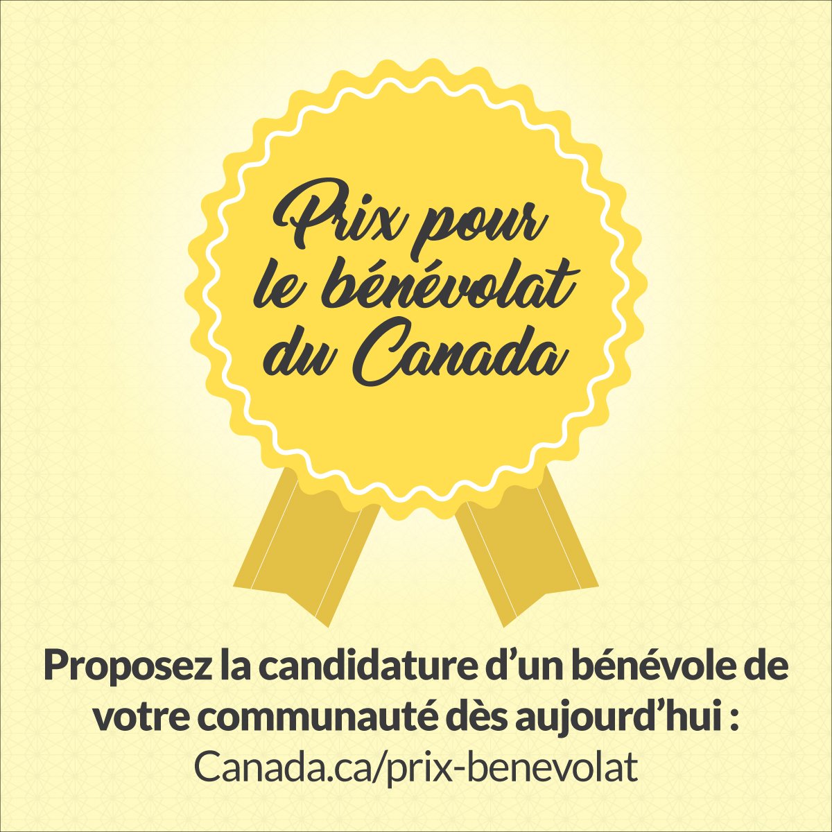 Le gouvernement canadien est déterminé à reconnaître l’importante contribution des bénévoles pour le Canada. L’appel de candidatures pour les Prix pour le bénévolat du Canada est lancé! Vous avez jusqu’au 15 juin prochain pour proposer une candidature. https://www.canada.ca/fr/emploi-developpement-social/nouvelles/2018/04/prix-pour-le-benevolat-du-canada-le-gouvernement-du-canada-lance-lappel-de-candidatures-pour-souligner-la-semaine-de-laction-benevole.html …pic.twitter.com/2PpbJ98vB4