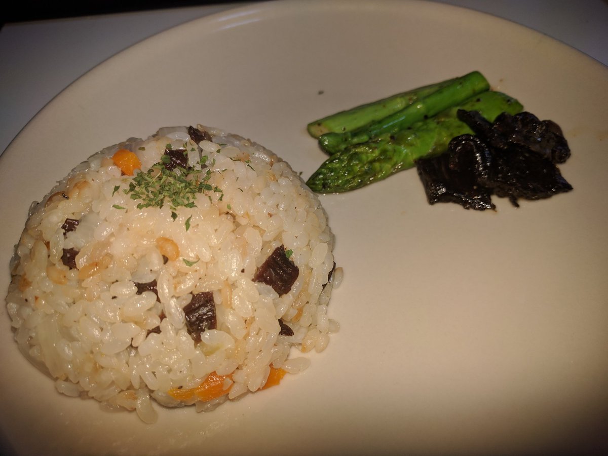 人は負けたと思ったときに初めて負けるのだ!えぞしかジャーキーの炊き込みピラフ、鹿肉と北海道産アスパラのバター炒め、鹿肉のポトフ風の三品だ!pic.twitter.com/Lvf4bOkzDZ
