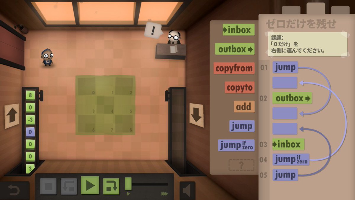 ヒューマンリソースマシーンがプログラミングゲームと言うんでやってみたらまんまアセンブラプログラミングだった。歯応えもそこそこで面白かったので一気に全クリアしてしまうなど