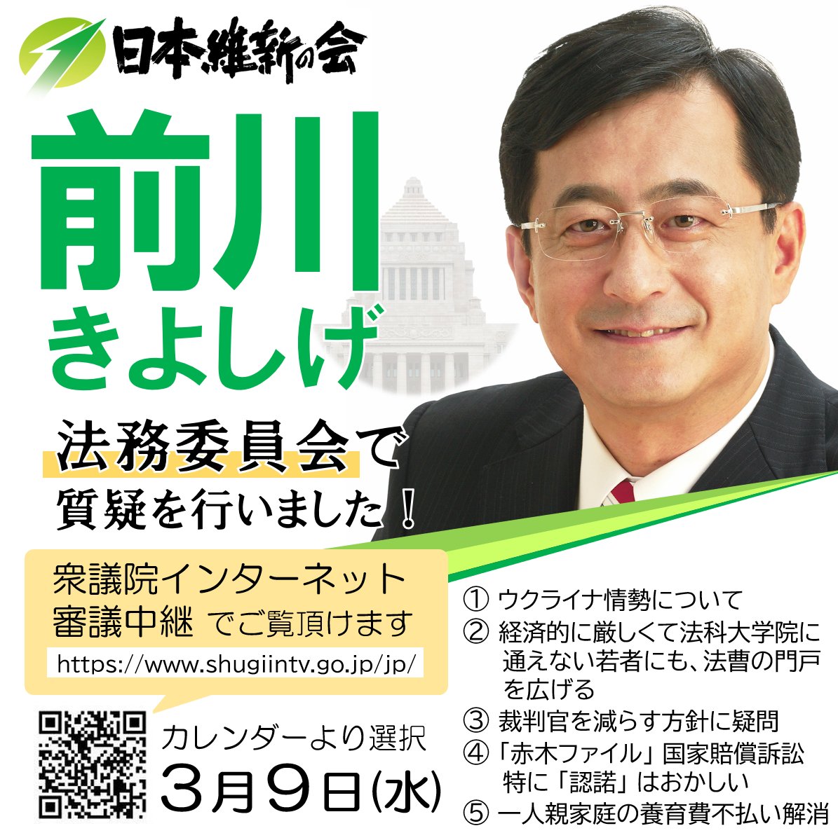 本日3月25日11時15分頃~11時30分頃、法務委員会にて質疑を行います。 ネット中継または録画を是非ご覧下さい。 https://www.shugiintv.go.jp/jp/ (スタッフ投稿)pic.twitter.com/SpWKOI3Fw0