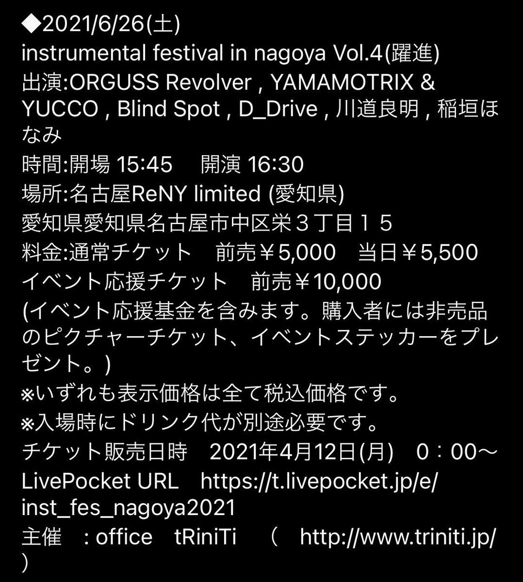 6月26日に行われる名古屋インストフェス、改めて参加を表明してくれたD_Driveを始め、強力なバンド達が勢揃い。インストミュージックの凄さ楽しさ素晴らしさをしっかりと伝えるライヴですよ〜