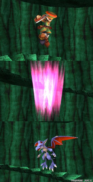 このままだと落下しちゃうけどルウの特殊能力「変身」でガーゴイルになると飛べちゃうよ、を表現したかった。ゲーム中にこんな操作は出来ませんが…。pic.twitter.com/shBdFYJrB1