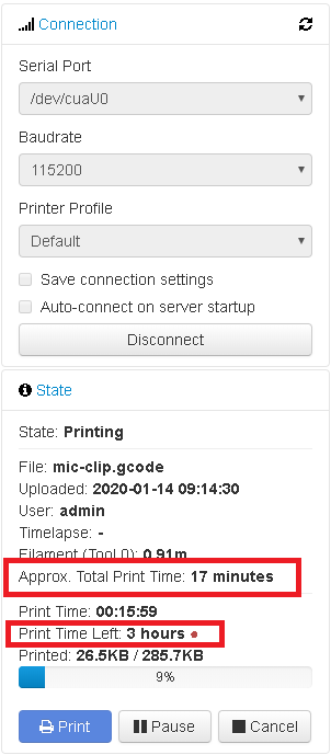 I know the red dot here means "this is probably wildly inaccurate," but I still find it hilarious when it's estimating 10x the approximate print time.pic.twitter.com/xl1uPpHMPA