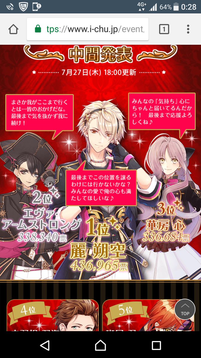 【I★Chu Award ~2017~ 第4回 中間発表!】 ☆1位☆麗 朔空 ☆2位☆エヴァ・アームストロング ☆3位☆華房心 1~3位のコメントはこちら!⇒https://www.i-chu.jp/event/campaign/award_2017/ …