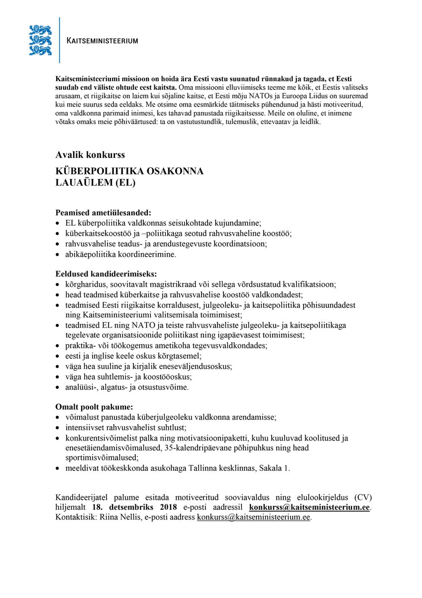 Kandideeri tööle Kaitseministeeriumisse!pic.twitter.com/0D9lKICxBz