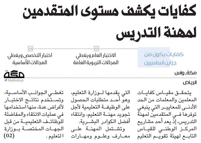 كفايات يكشف مستوى المتقدمين لمهنة التدريس http://bit.ly/2BrATP4 pic.twitter.com/gtKDeBEh0y