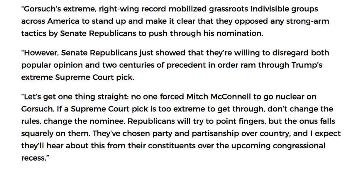 Here's our statement on GOP just blowing up 230 years of precedent for the extreme nominee of a president under investigation.pic.twitter.com/6eCGesY3mO