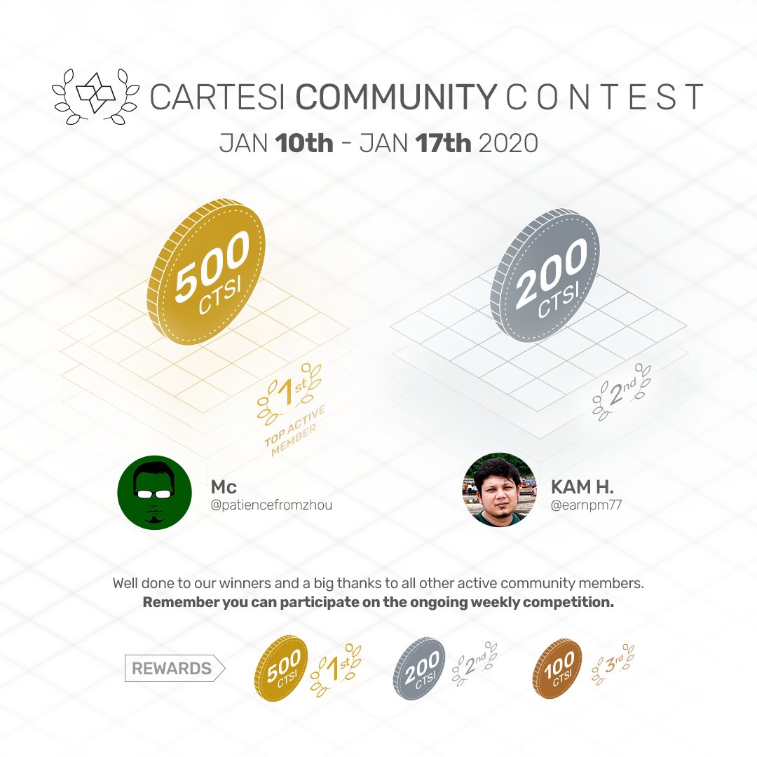 Announcing our 2 community Contest winners for the last week! The winners are: 1) @patiencefromzhou 2) @earnpm77 A big thank you to our every growing community for assisting to build the future of Cartesi!pic.twitter.com/lMJuFEs6HL