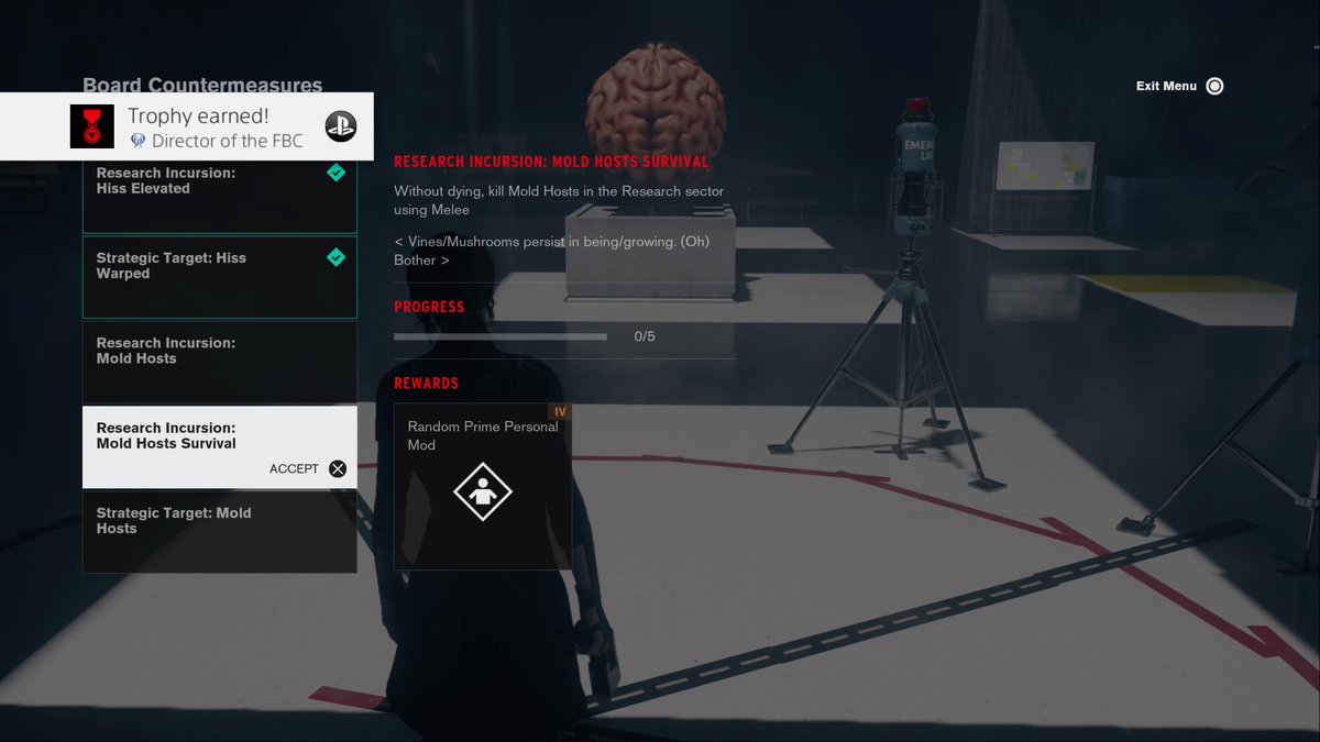 Final verdict 6/10 - too annoying. Control Director of the FBC (Platinum) Unlock all other trophies