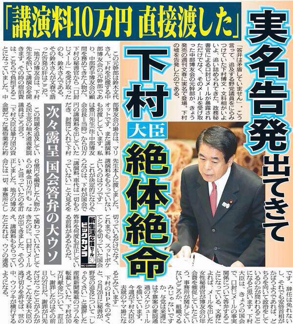 週刊誌の方がアベより信頼できる今日この頃。