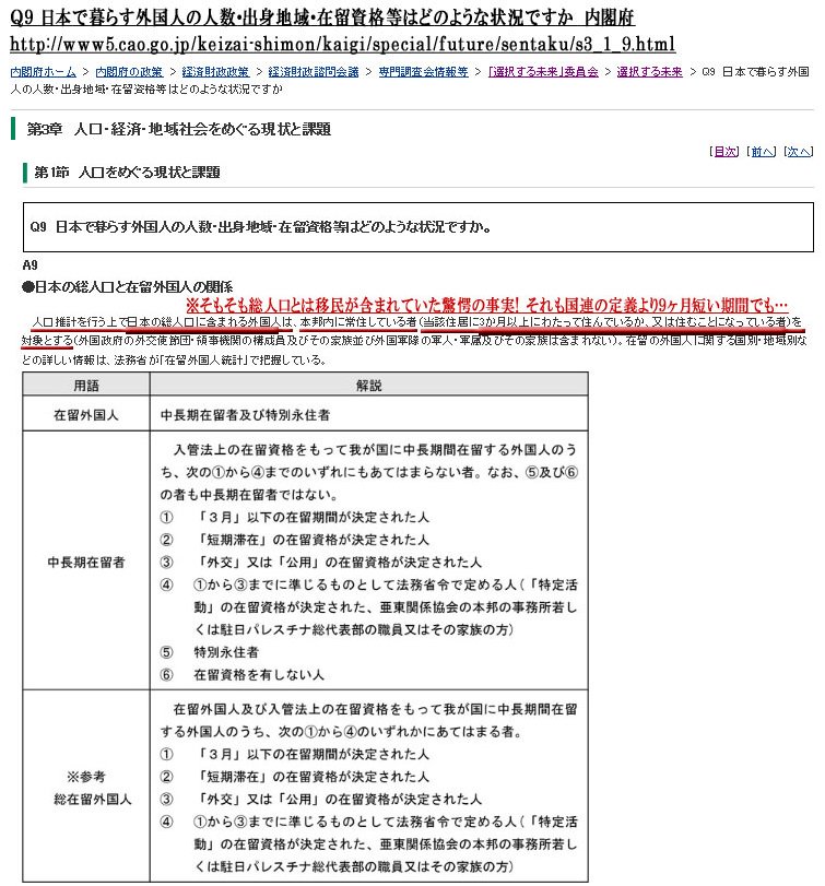 総務省定義では10万人増だが政府定義では47万人増に加え最悪1400万人… ・総務省>活動内容に制限が無い在留資格を持つ者 3頁http://www.soumu.go.jp/kokusai/pdf/sonota_b5.pdf … ・政府定義 安倍晋三「国民の人口に比して一定程度の外国人や家族を期限設けず受け入れ国家を維持する政策」 主に40分10秒~http://www.shugiintv.go.jp/jp/index.php?ex=VL&deli_id=48316&media_type=hb …pic.twitter.com/cmA9F12RbI