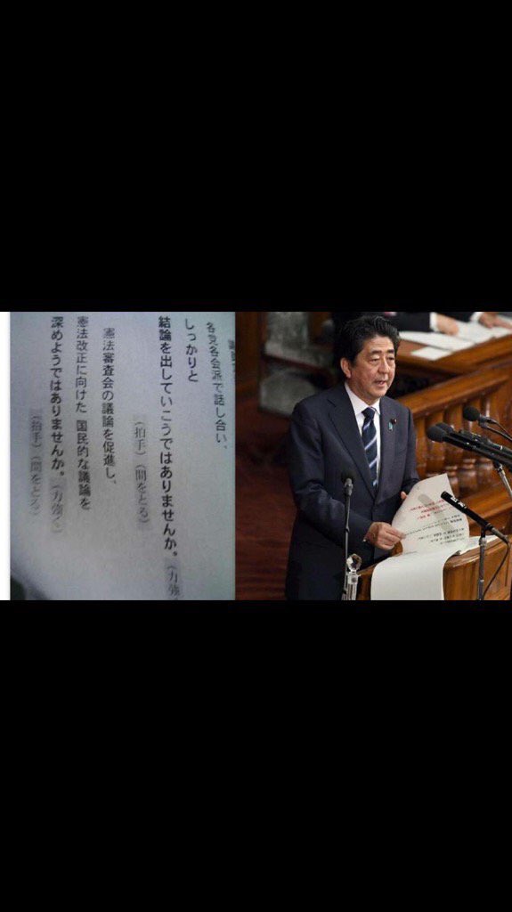 #枝野幸男 の演説メモと#安倍晋三 の振り付け付き演説脚本 安倍が振り付け通りに一所懸命踊っているのが分かる ゴーストライターと本家ゴーストの豪華狂宴 どっちもよくやるねぇ