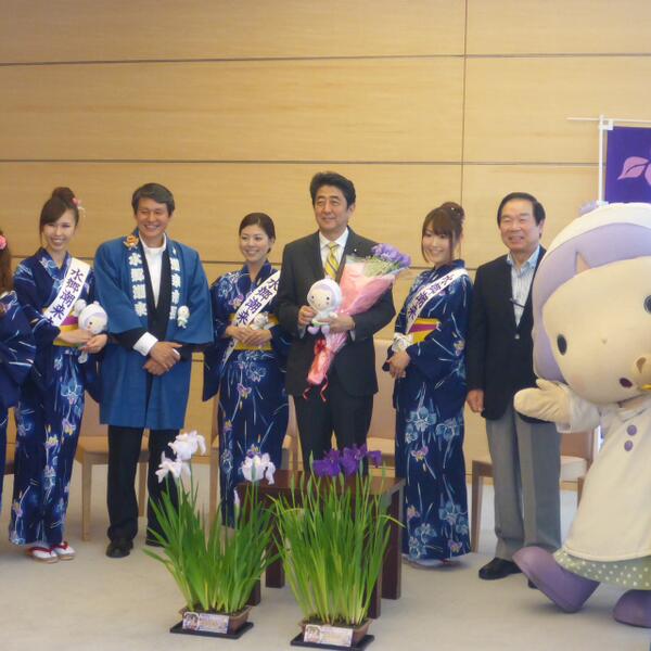 【Facebook更新】「あやめは梅雨どきに彩りを添えてくれる花です。茨城県潮来市のあやめ娘さんたちの訪問を受けました。」総理メッセージはこちら ⇒ http://twme.jp/pmo/01TG pic.twitter.com/HsbtLIeowL