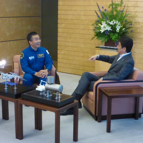 @kantei: 【Facebook更新】「日本人初の国際宇宙ステーション船長、若田光一さんが、一時帰国中に官邸を訪問してくれました。」総理メッセージの続きは⇒ http://twme.jp/pmo/01Zr pic.twitter.com/ZMdqRUYjnj” 「地球、青かったよ!」