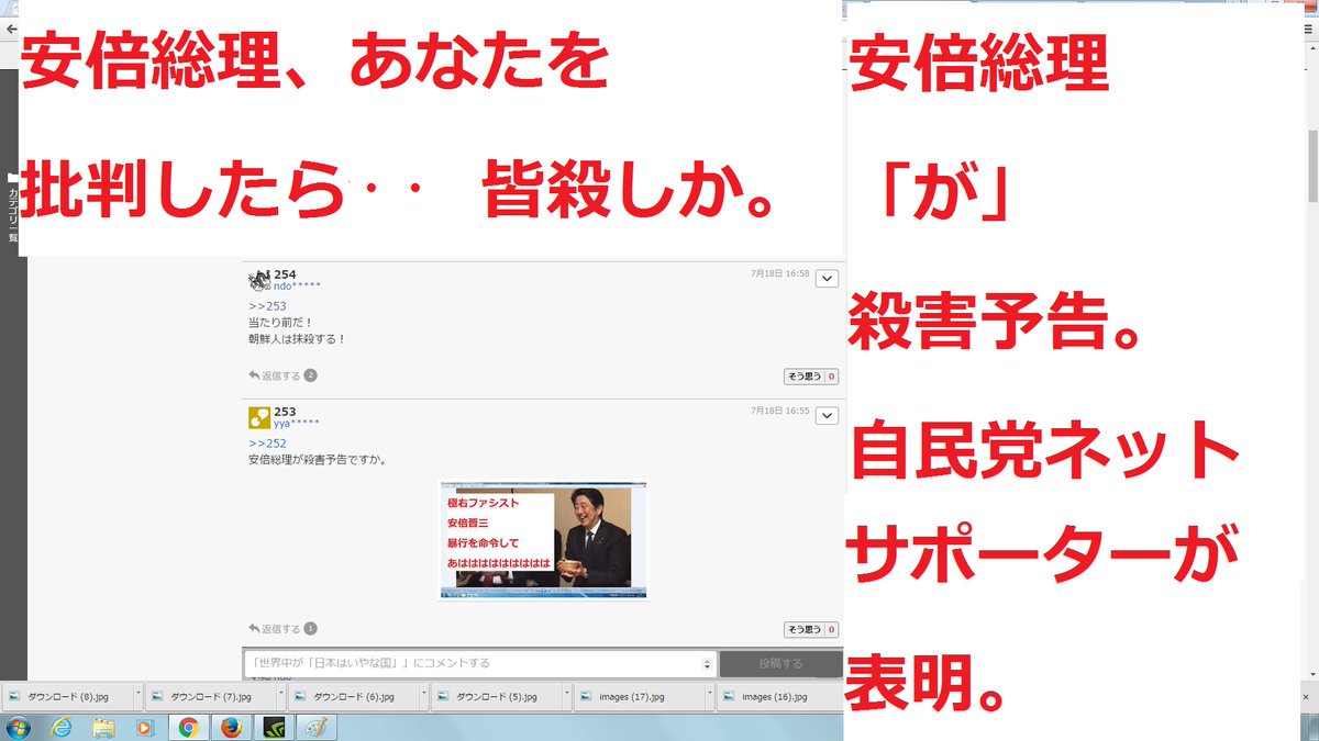 お前を批判したら殺害すると言われたぞ。恐怖で国民を支配して支持させようという極右ファシスト殺人鬼安倍総理自民党ならではの恐怖支配か。脅迫して安倍自民党支持率UPか。安倍総理は人殺しpic.twitter.com/QVkduyeIkX