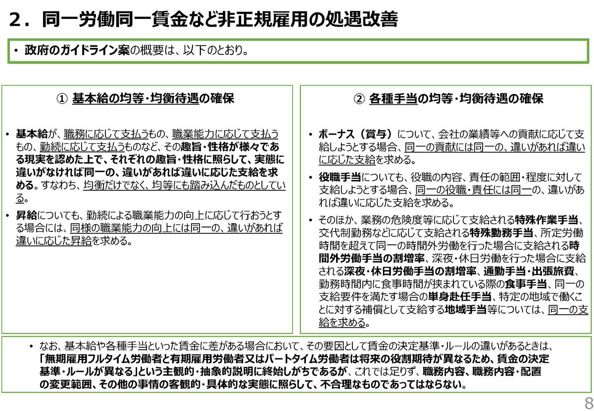 同一労働同一賃金はダメだな競争力が無いから少しは差を付けないと、なまくらが出てためです
