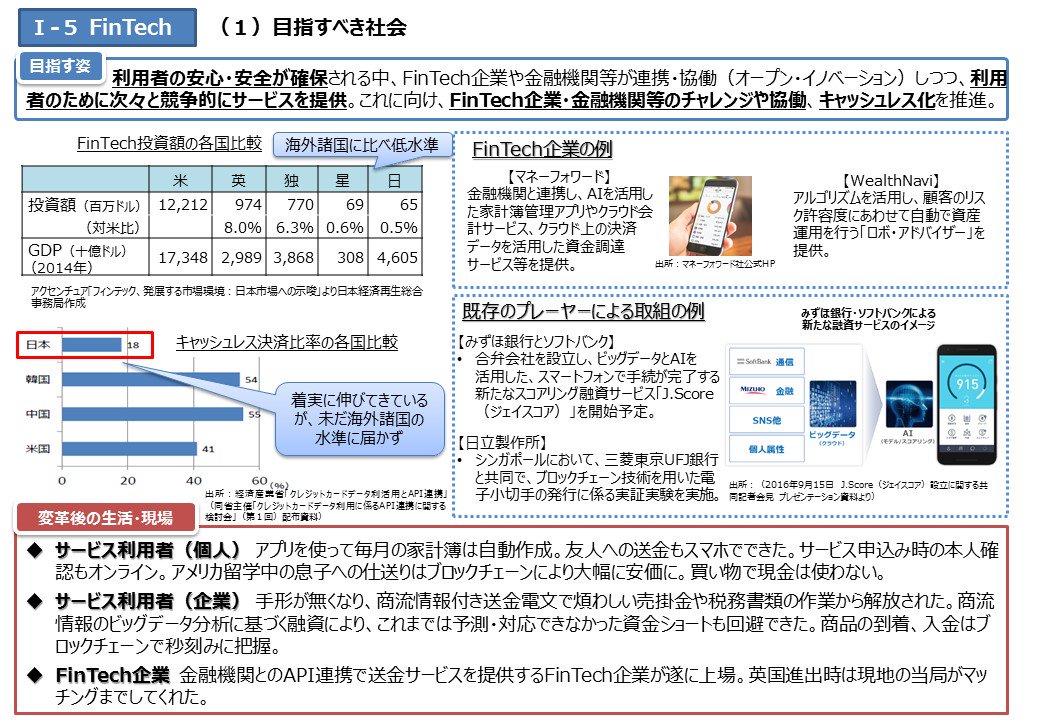 ブロックチェーンて仮想通貨の仕掛けだろ? 総務省は仮想通貨は「物」だって言ってるし、 国は現金とのレートを保証しない 目指すべき社会とやらの項目に納税が入ってない時点で、 現金主義が最良だって自明してるしね マウントゴックスみたいになったらどうすんの?