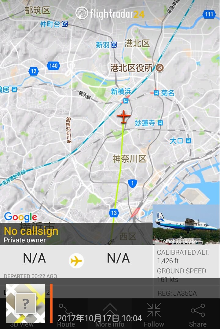 10時04分に被害届を妨害する新中央航空のドルニエ(機体番号→JA35CA)が高度450mでシュュ~と響かせ横浜市神奈川区六角橋6-24の団地上空に飛来した→pic.twitter.com/3ettXquNzK