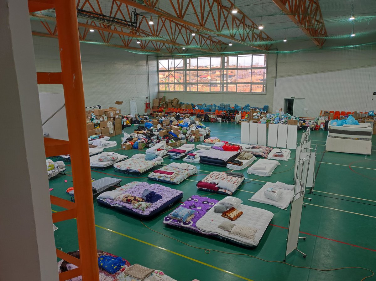 Questa è la palestra di Isaccea, piccola località di 5.000 abitanti dove ogni giorno arrivano tra i 2 e i 3 mila rifugiati dall'Ucraina. Negli spogliatoi alcune famiglie e una donna sola con 5 gatti, a cui abbiamo donato tutto il necessario, in attesa di sistemarsi altrove.pic.twitter.com/0lhQsQBiBS