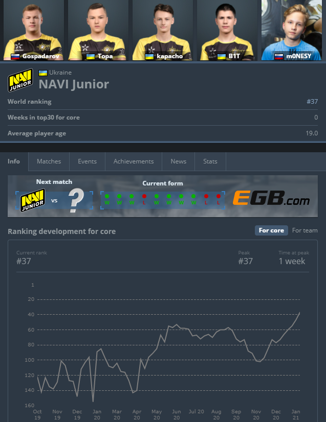 Getting #37 World Ranking place with team on http://hltv.org . New record for us! Keep going.
