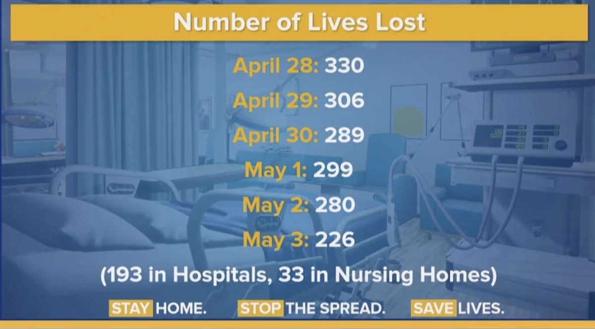 Good news: the plateau is real. Bad news: yesterday's dip in daily deaths may have been a holiday reporting blip. We are back at 778 deaths in the past 24 hours, similar to #'s last week. As long as total hospitalizations remains flat, I suspect we can expect more of the same.pic.twitter.com/SRXZmgzFet