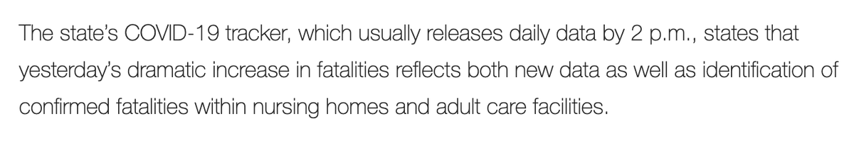 The reported death toll also reached a new high: 2,746. There is an important caveat to this number: NY reported 941 deaths, most of which were newly confirmed, but did not occur in the last 24 hours. Sharp local reporting on the topic: https://riverheadlocal.com/2020/05/07/suffolks-coronavirus-death-toll-leaps-by-227-new-york-states-by-952/ …pic.twitter.com/9SVt4FUmtG