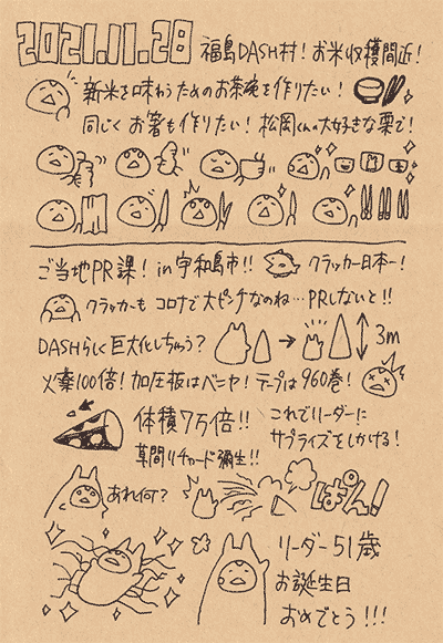 本日の鉄腕DASHは ・お米の収穫を前に手作りのお茶碗とお箸を作りたい! ・ご当地PR課 in 宇和島 コロナでピンチのクラッカーをPR! 体積7万倍の巨大クラッカーで城島リーダーの誕生日を祝う!pic.twitter.com/IVj6ig1fwQ