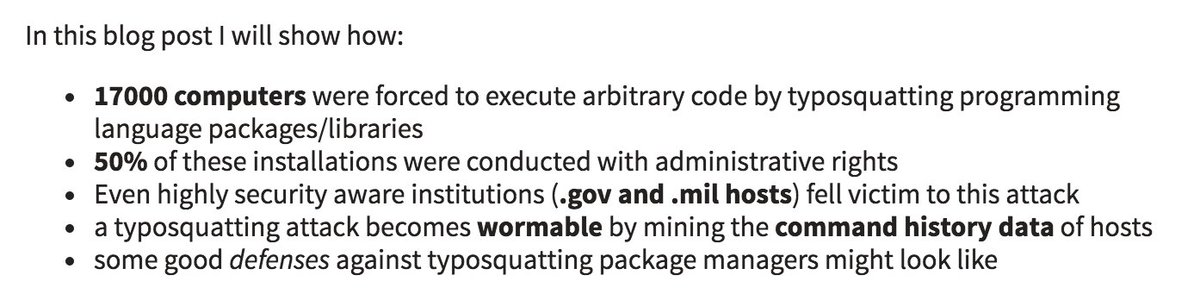 Brilliant but evil: Taking over 17k hosts by typosquatting package managers.