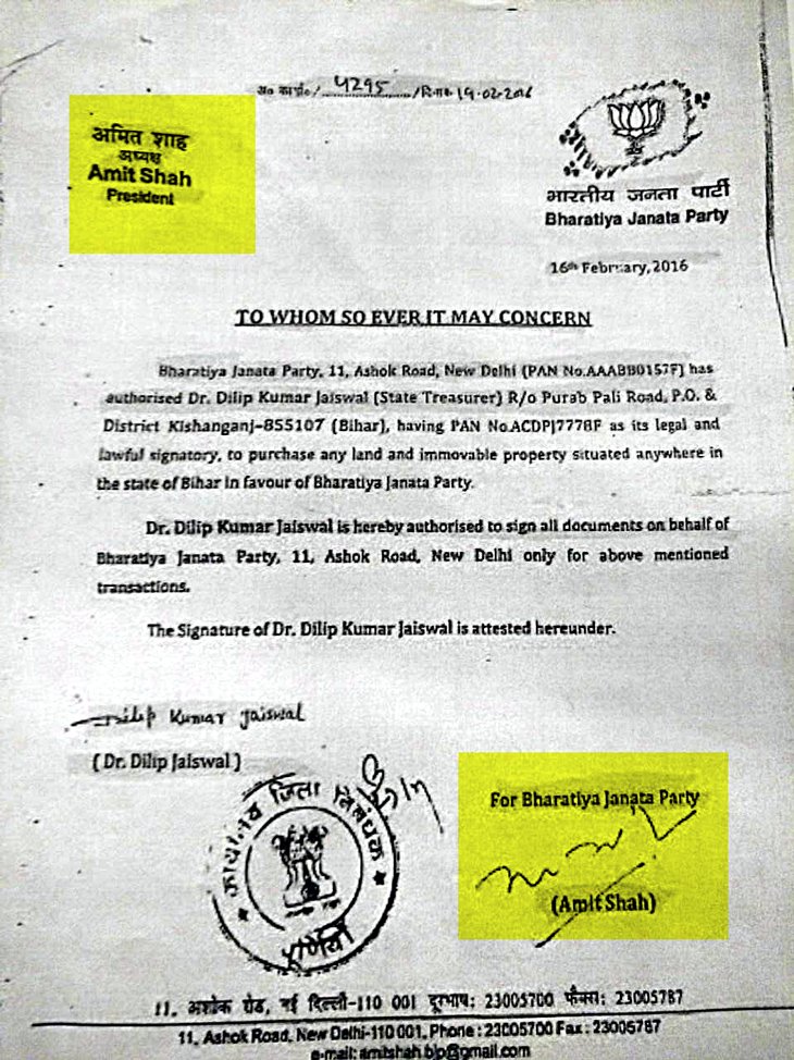 1: Amit Shah's letter instructing Dilip Jaiswal to buy land in Kishanganj 2: Kishanganj land deed of Rs 49.5 lakh http://www.catchnews.com/india-news/bjp-paid-crores-in-cash-to-buy-land-before-note-ban-amit-shah-authorised-deals-1480425007.html/fullview …pic.twitter.com/VroMq7rl8O