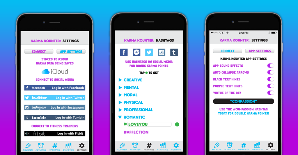 Karma Kounter Sneak Peek • Settings + Hashtags Screens